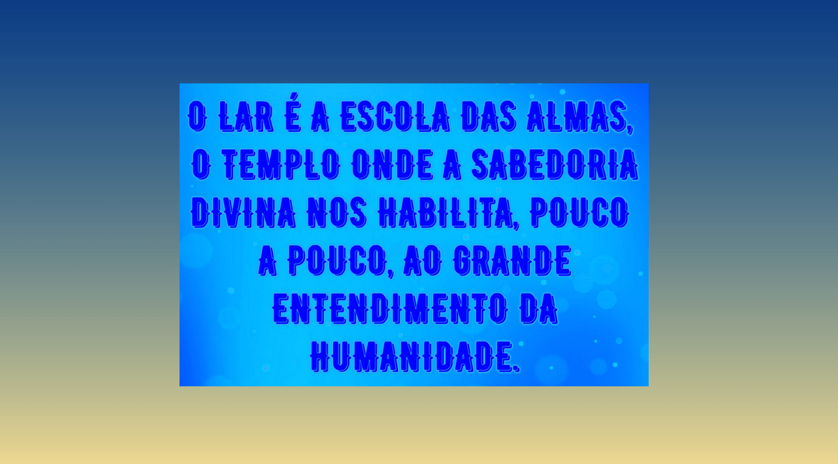 — O lar é a escola das almas, o templo onde a sabedoria divina nos habilita, pouco a pouco, ao grande entendimento da Humanidade.